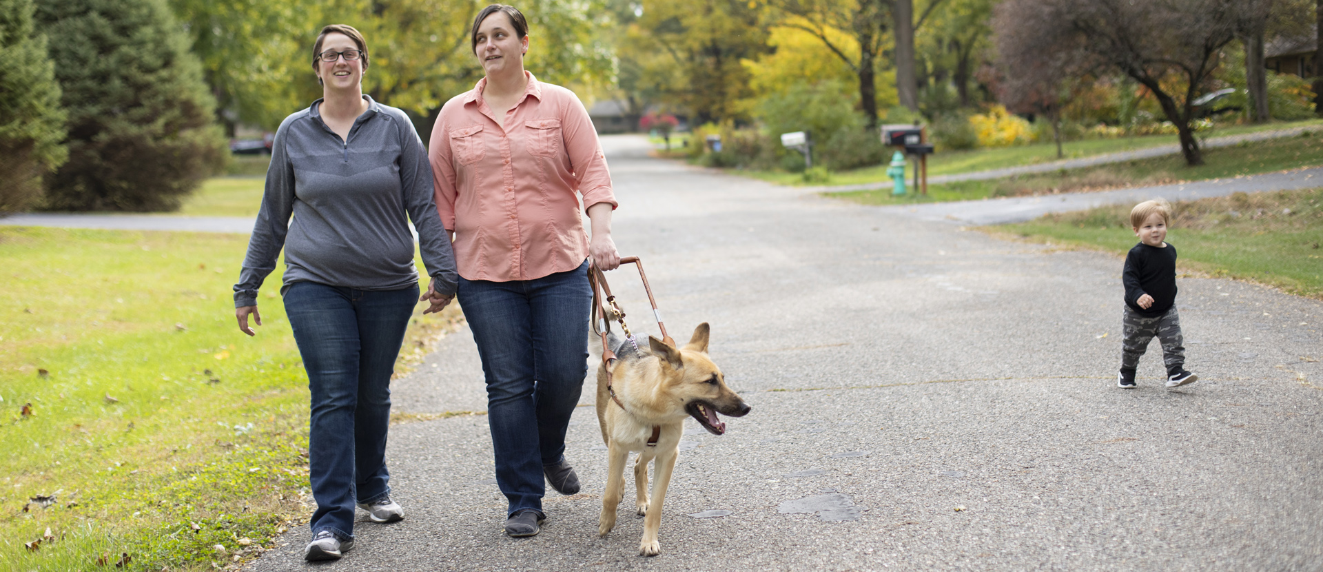 The white cane allows you to travel independently and safely—no blind person should be without one. We offer you a free one. You can order a new one every six months.